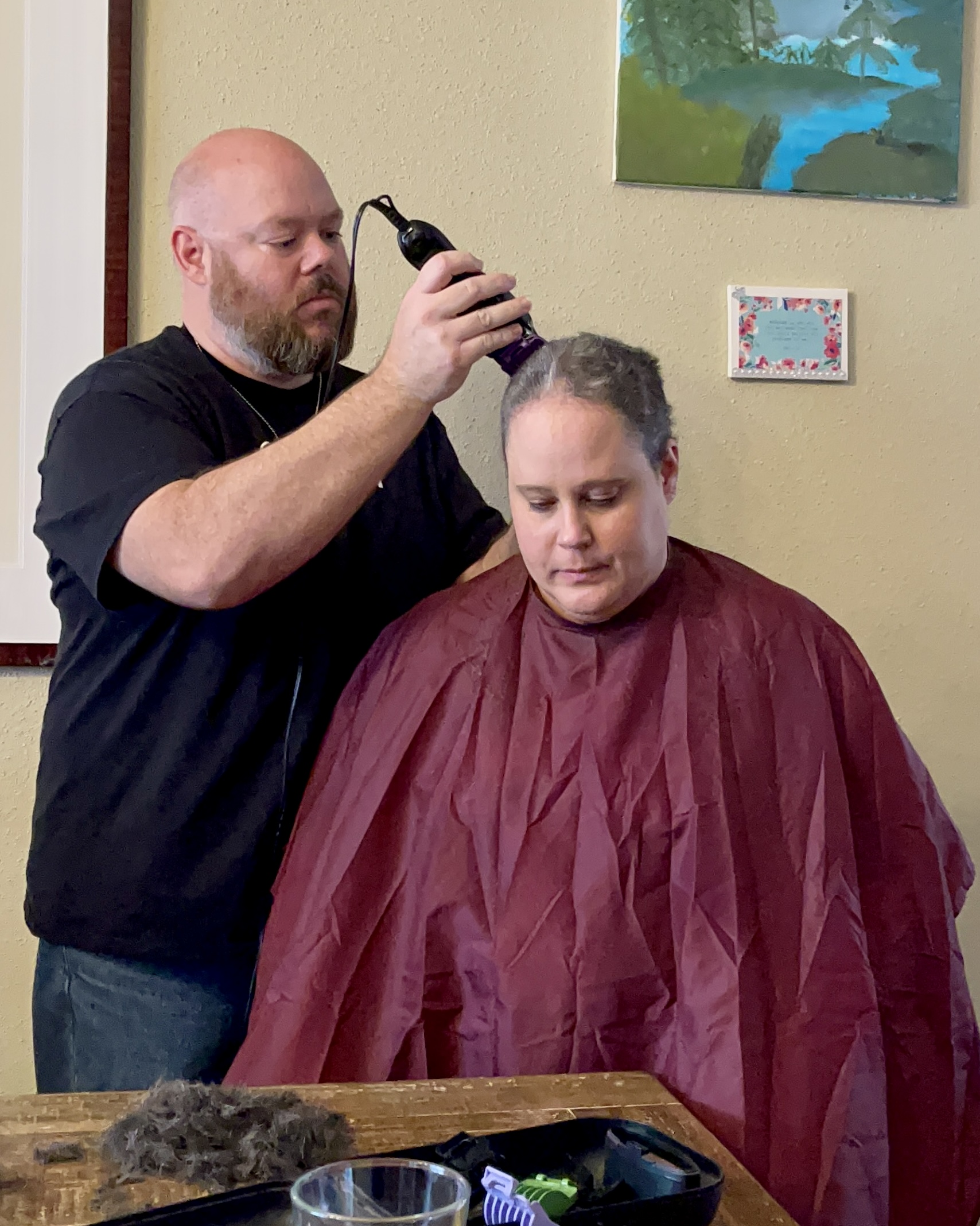 But to the bigger news. By Thursday, I faced the reality that it was time to cut my hair. I started having chunks of hair fall out. So with the help of my family, Chris had the honor of cutting my hair as short as I could tolerate. They all said I looked cute and could pull off the short hair well. I personal don’t like it. It was a painful thing to do, but I did it. I know when this is all over it will grow back, but it still doesn’t make it any easier. I do take comfort that I have some amazing wigs that I really love. I am guessing by the end of this week if not by next week, I will no longer have any more hair on my head. I joked with some that I am shedding more than the dog right now. Haha.